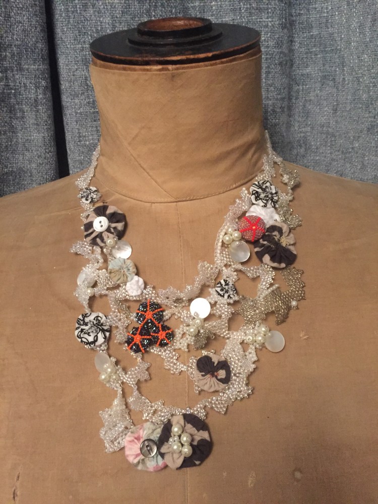 Peterborough Gallery runs an open exhibition every year. I always miss the deadline. This year, I’m going to make it. Submission opened yesterday and continues over the weekend. My work is packaged up and ready to go. I did a painting, collage and neckpiece (which I finished late last night).