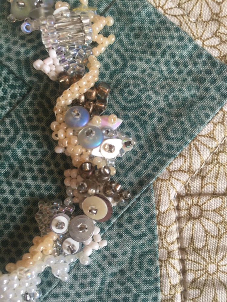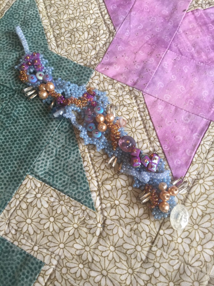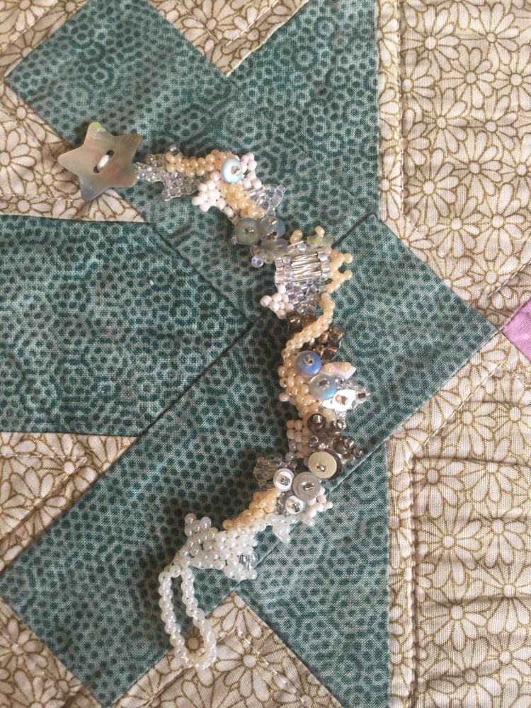 light blue bracelet with fronds resembling caragheen.