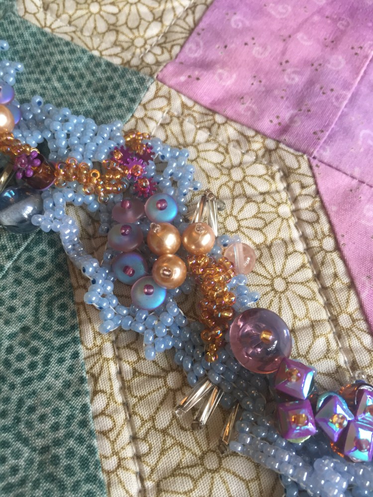 Light and frothy bracelet with iridescent glass beads and sequins.