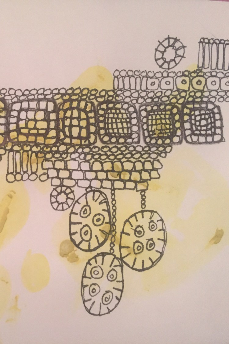 I’m really enjoying drawing at the moment. My sketchbook is shared with my 3 year old which keeps me from getting precious and means I don’t feel like I need to wait until I’m alone to draw. She’s knocking out some beautiful stuff. We work in felt pen. I have some lovely panetone ones along with a motley collection of garish cheap ones. The colours are lovely and combined with watercolours and metallics pretty adaptable.